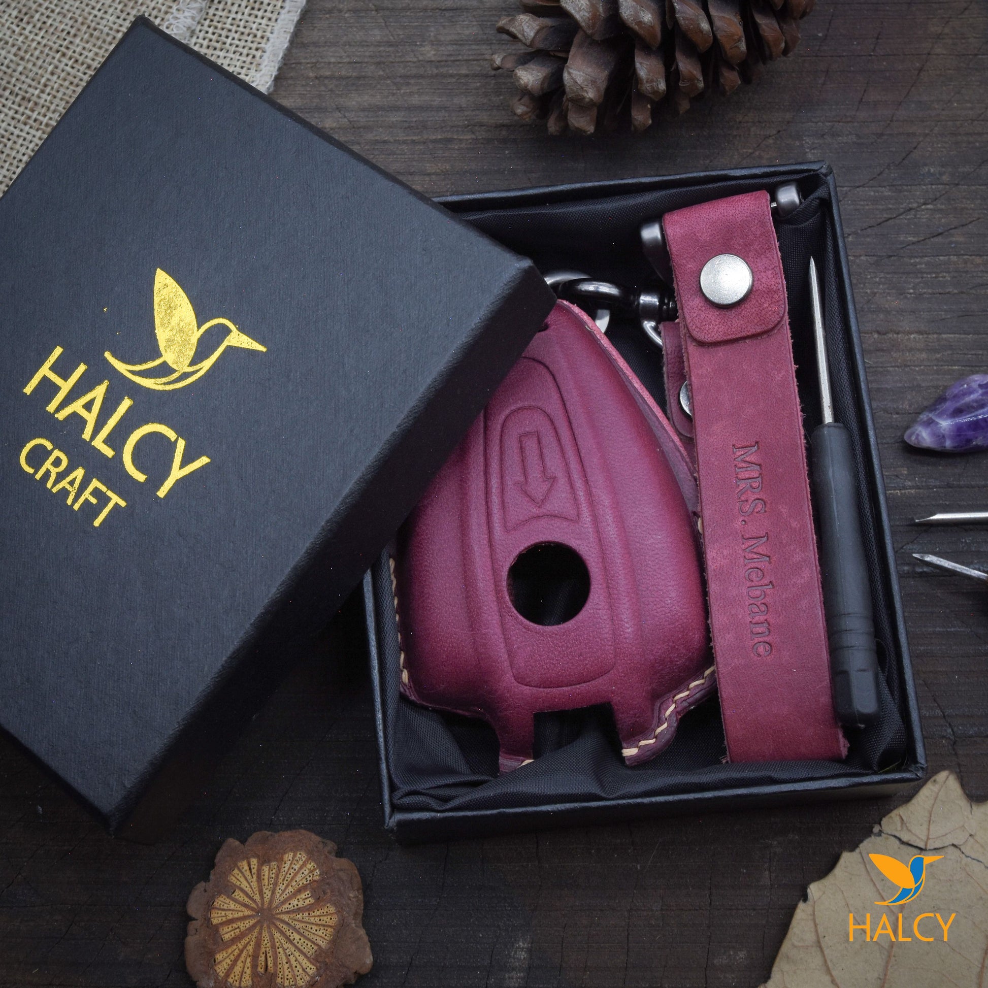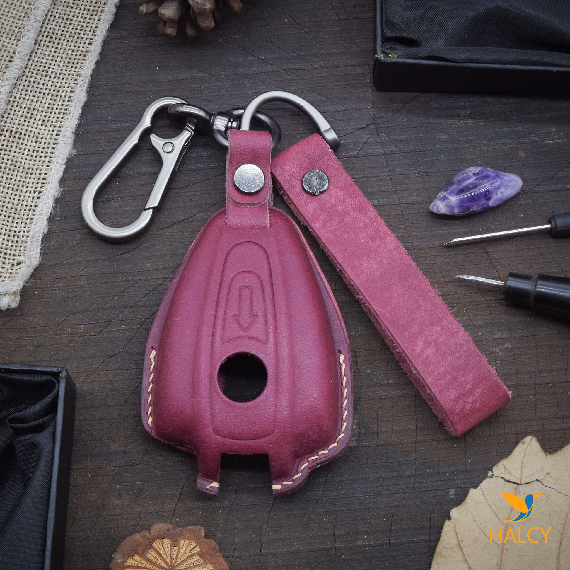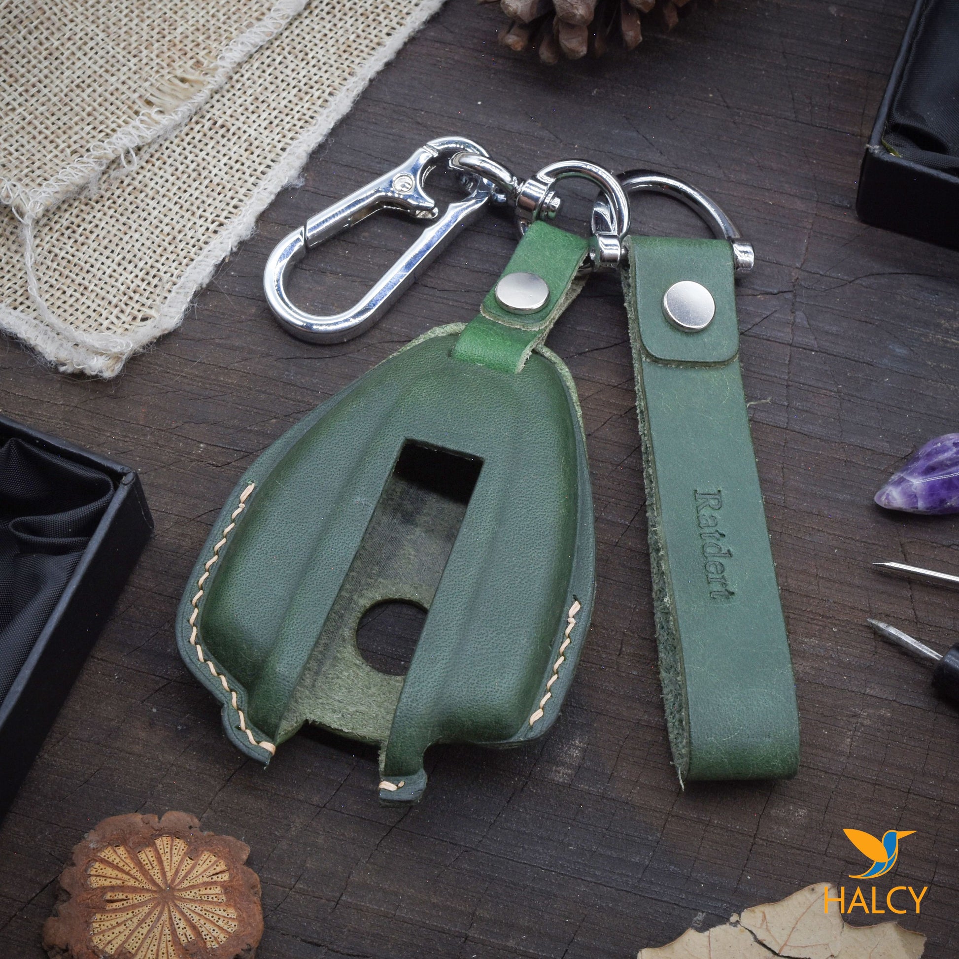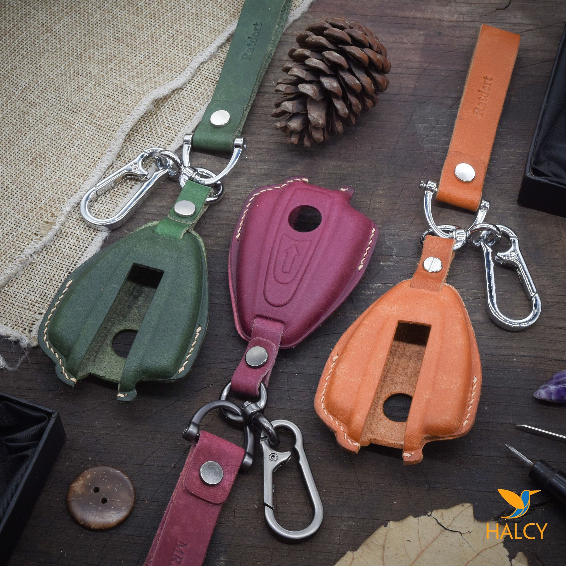 - Bao khoá bạn đang xem được làm tại xưởng da thủ công HALCY. Mỗi chiếc sẽ được tạo phom, cắt, khâu,… hoàn thiện ngay sau khi bạn đặt hàng.