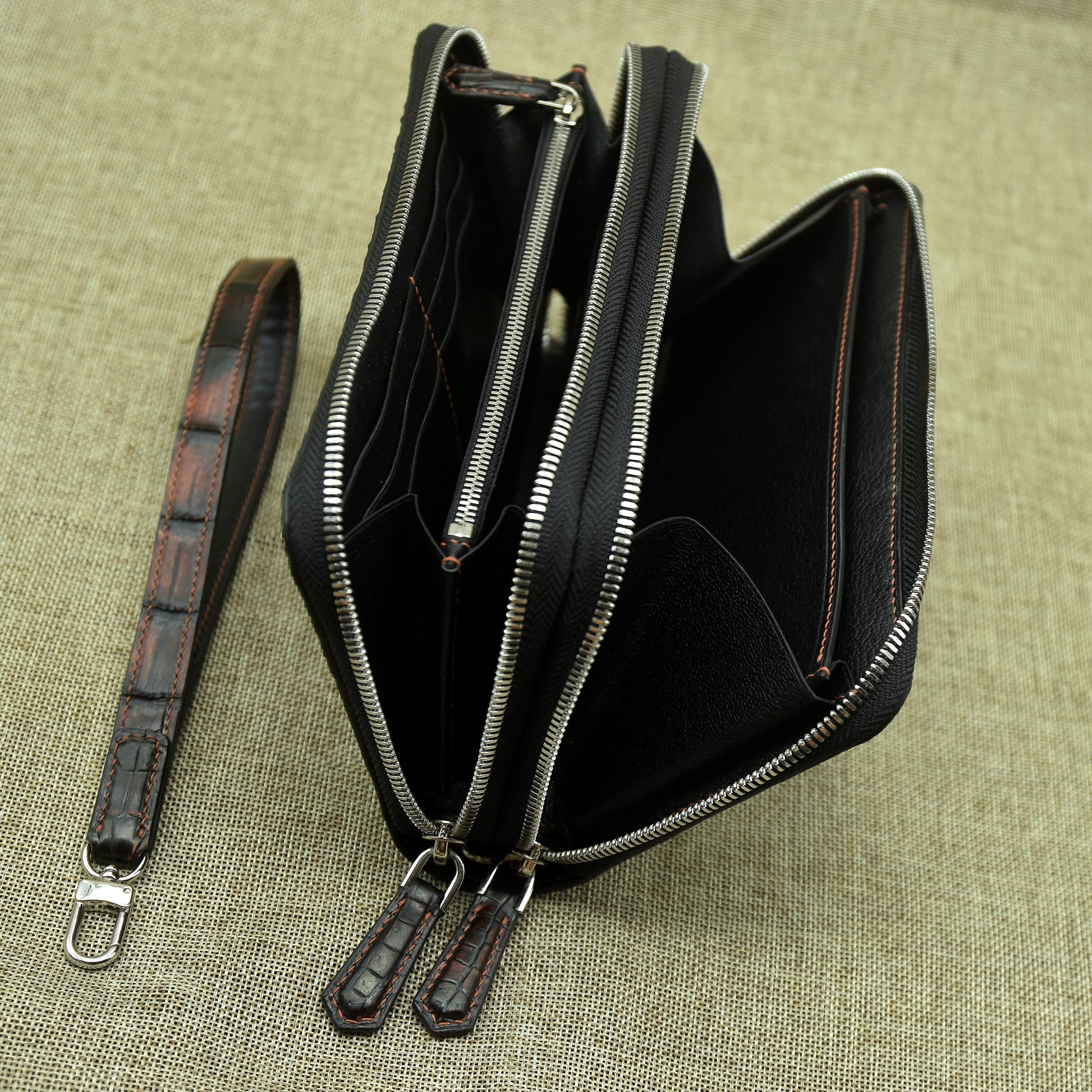 Clutch nam, 2 ngăn zip, làm thủ công - cắt tay, khâu tay, hoàn thiện bằng tay - từ da Cá sấu.