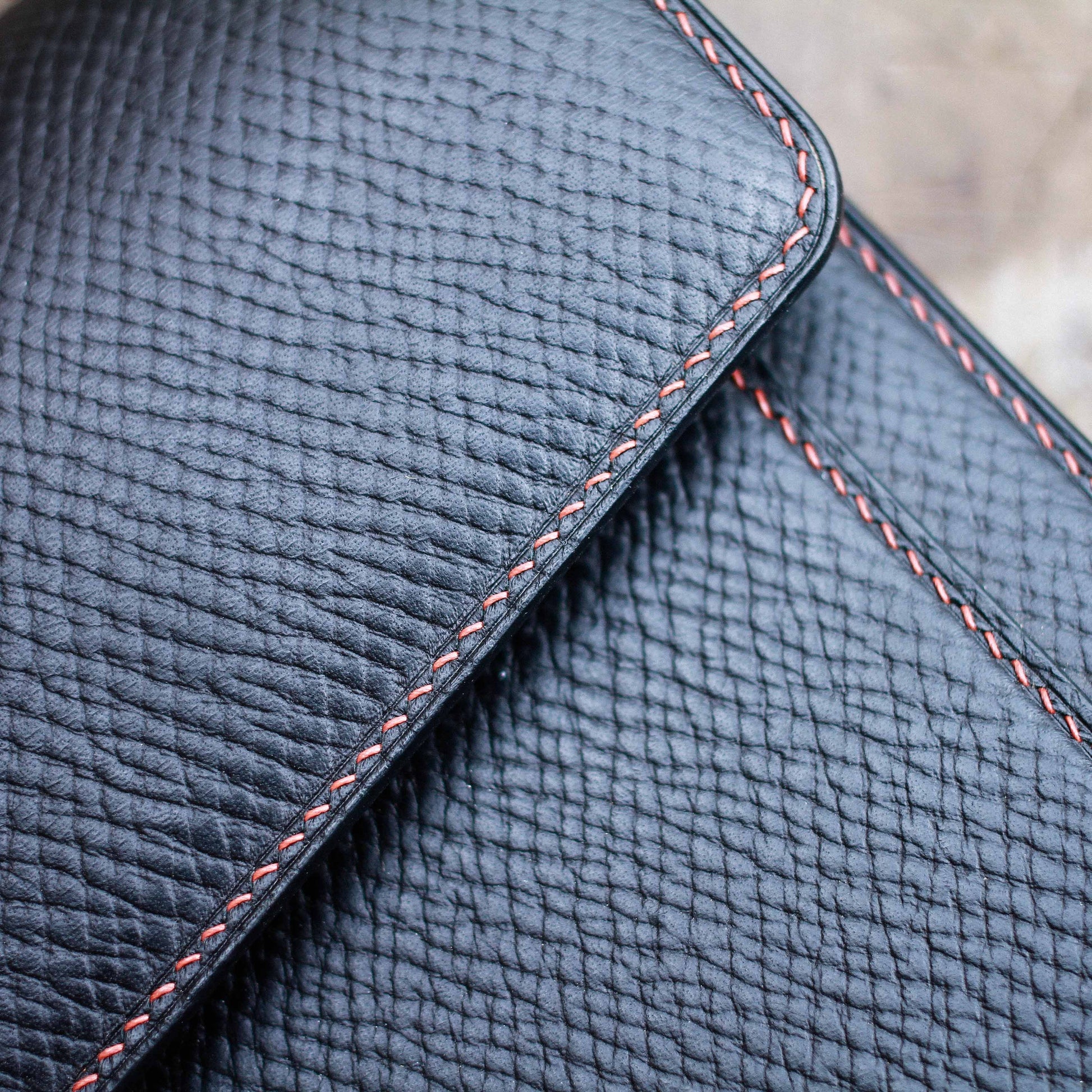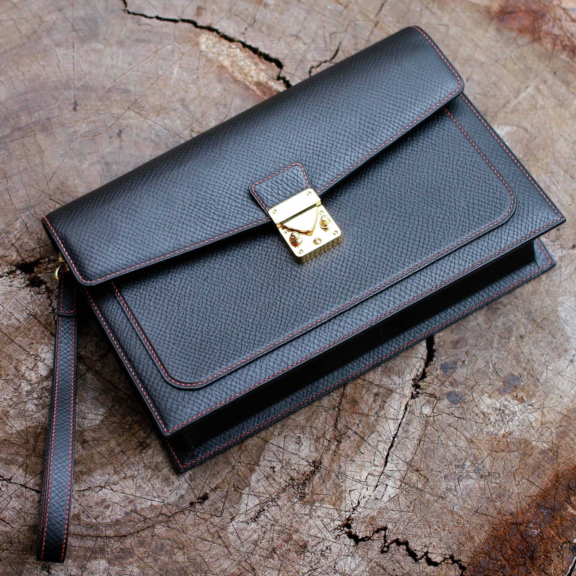 Clutch nam làm thủ công - cắt tay, khâu tay, nhuộm tay, hoàn thiện bằng tay - từ da Hatch grain của Horween Mỹ được những người thợ da đánh giá cao trên toàn cầu.