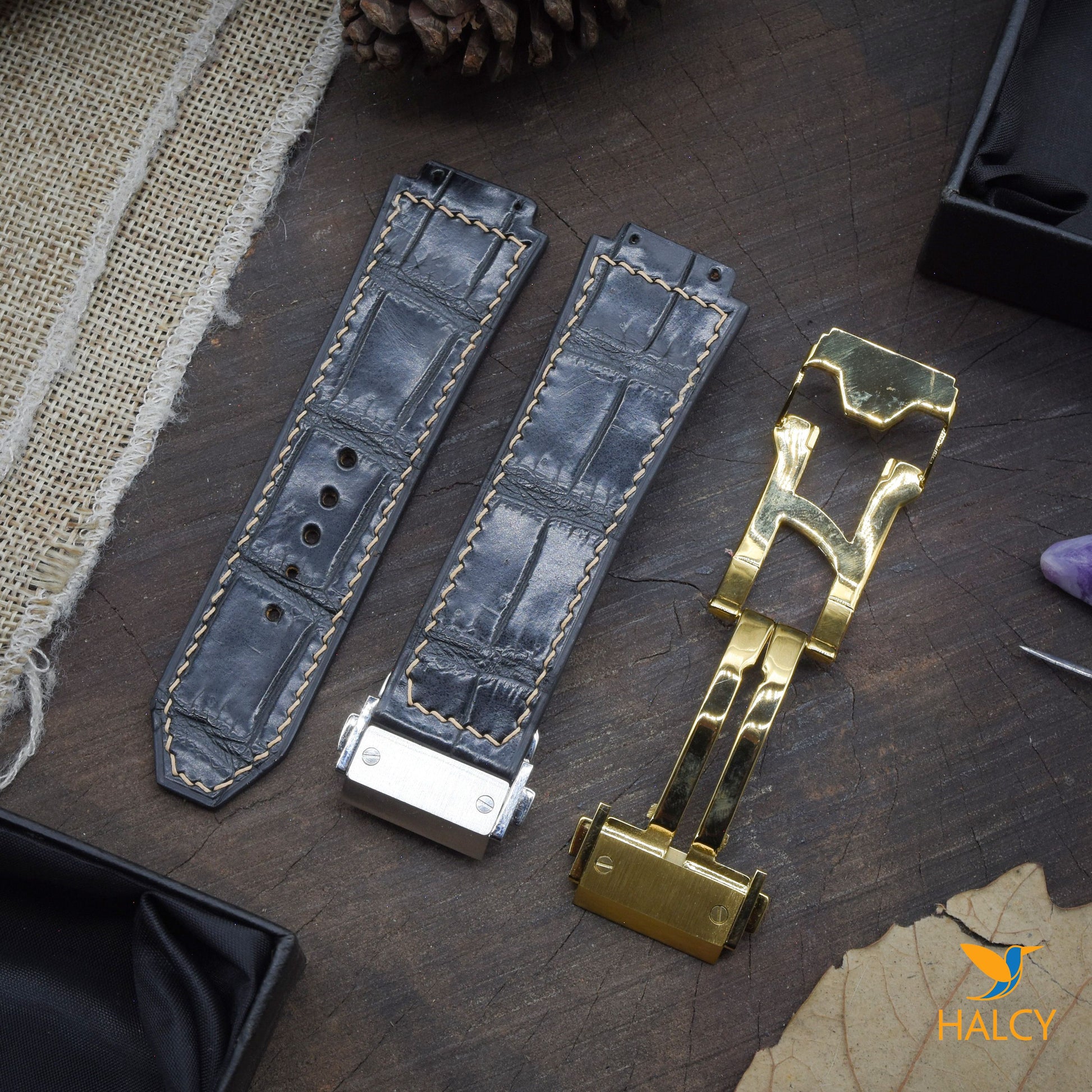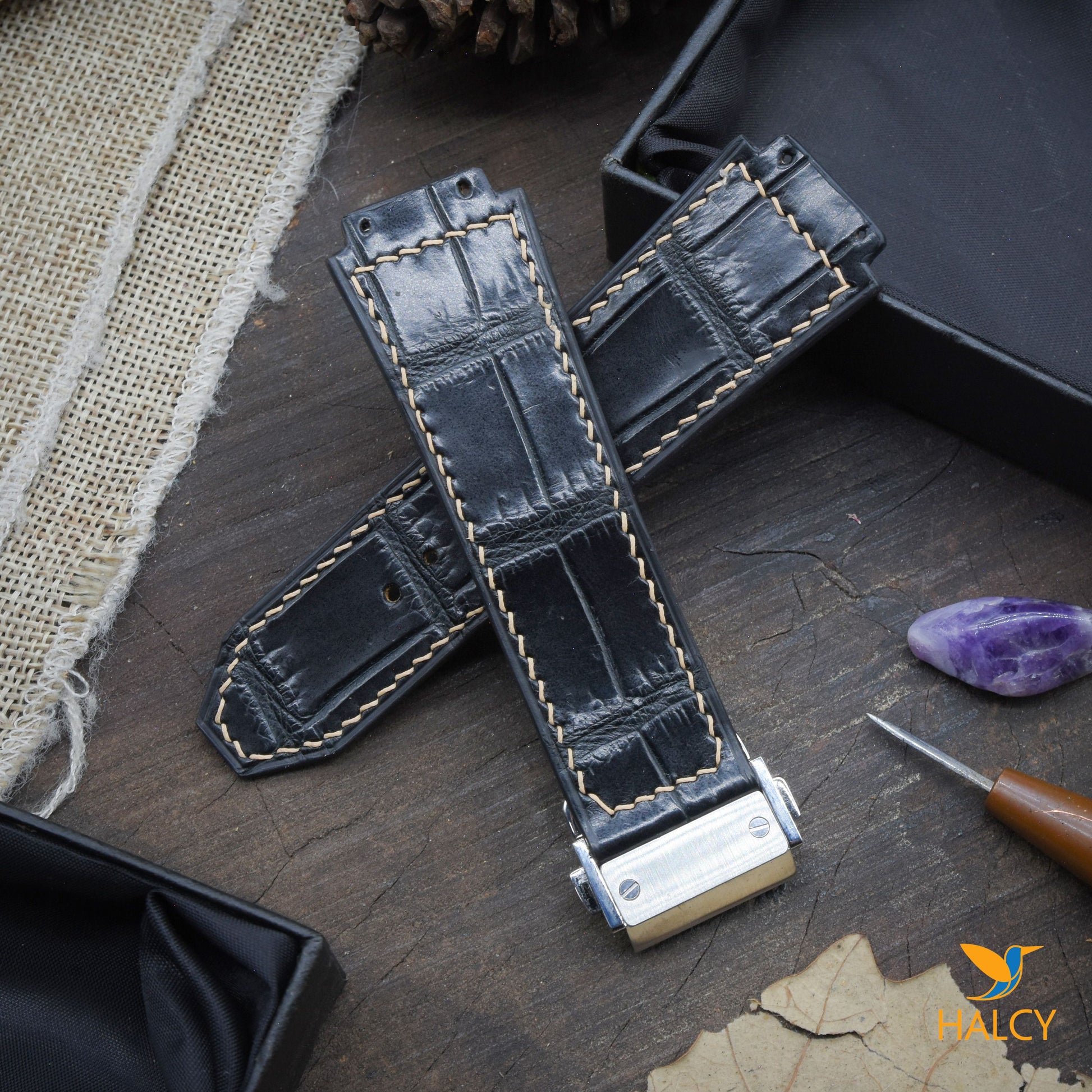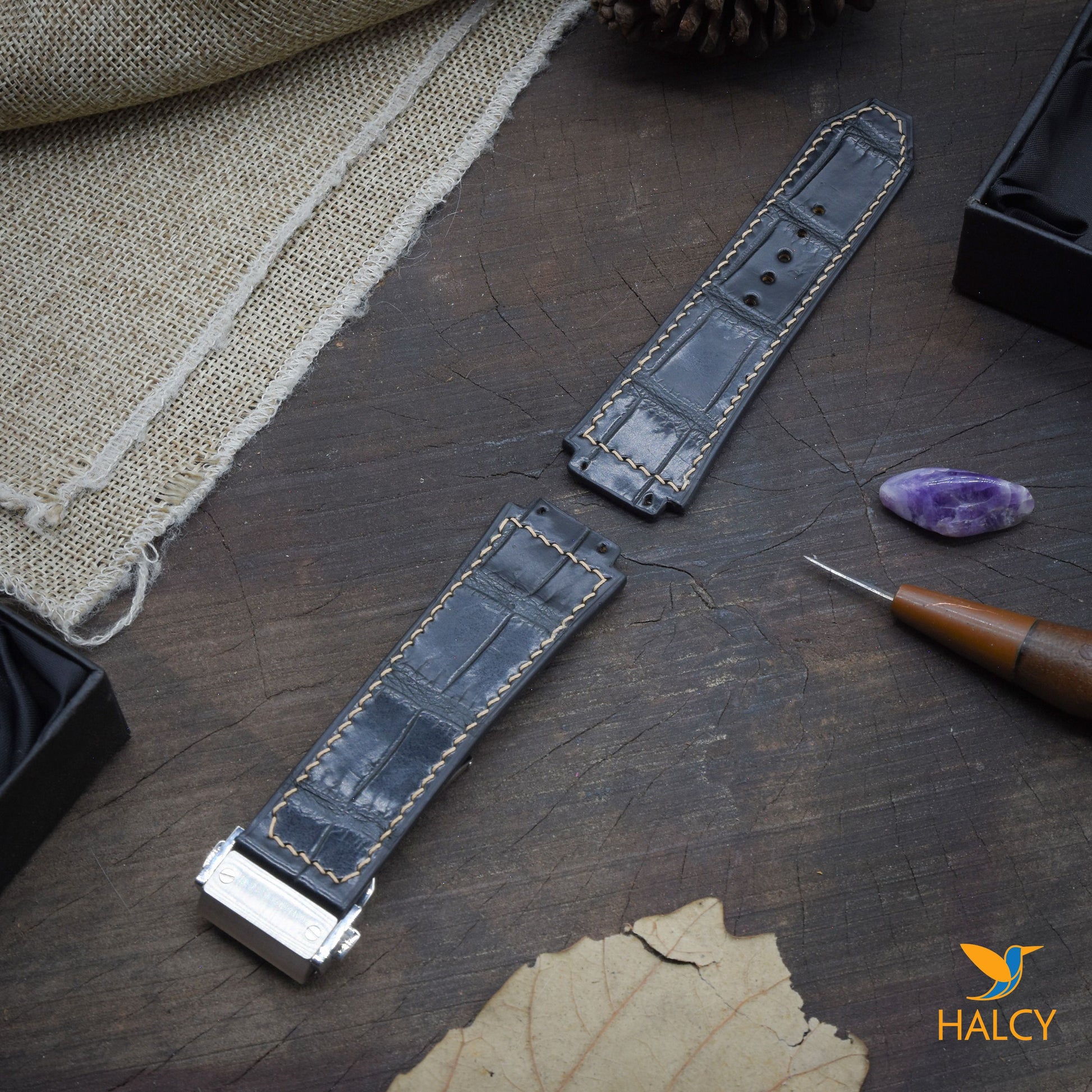 Dây đồng hồ làm thủ công từ da cá sấu đủ size cho đồng hồ Hublot