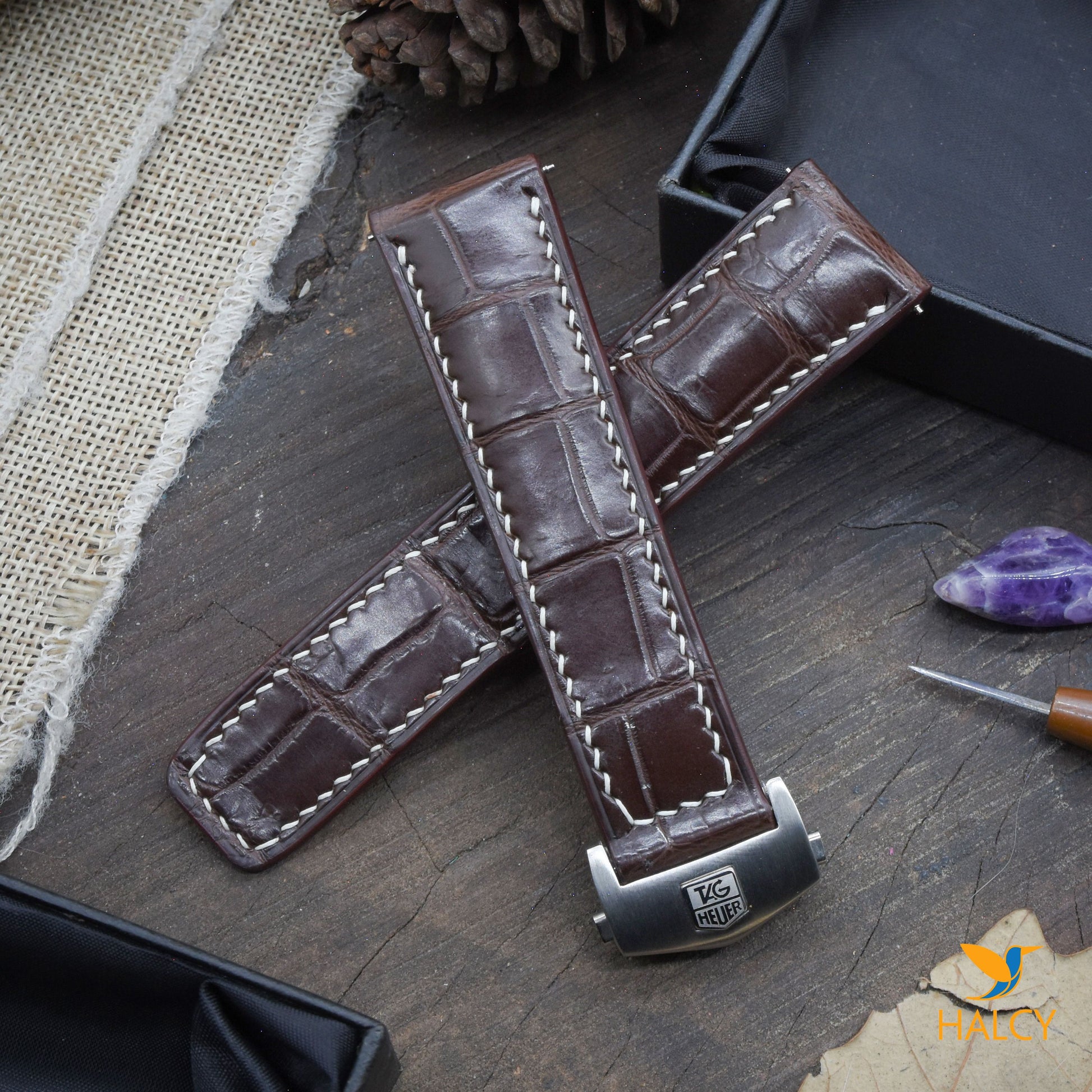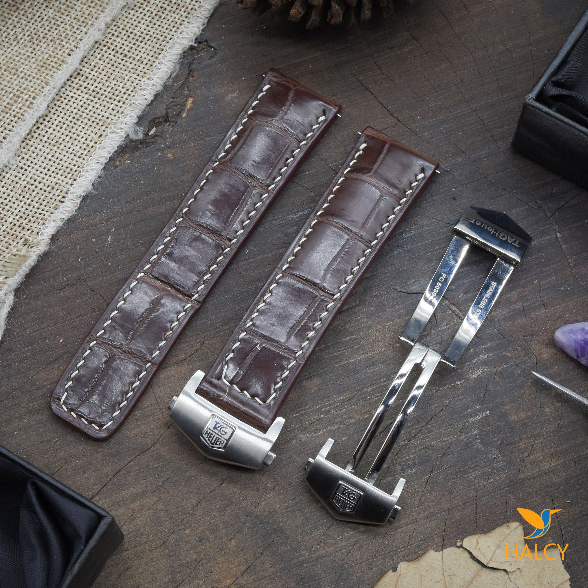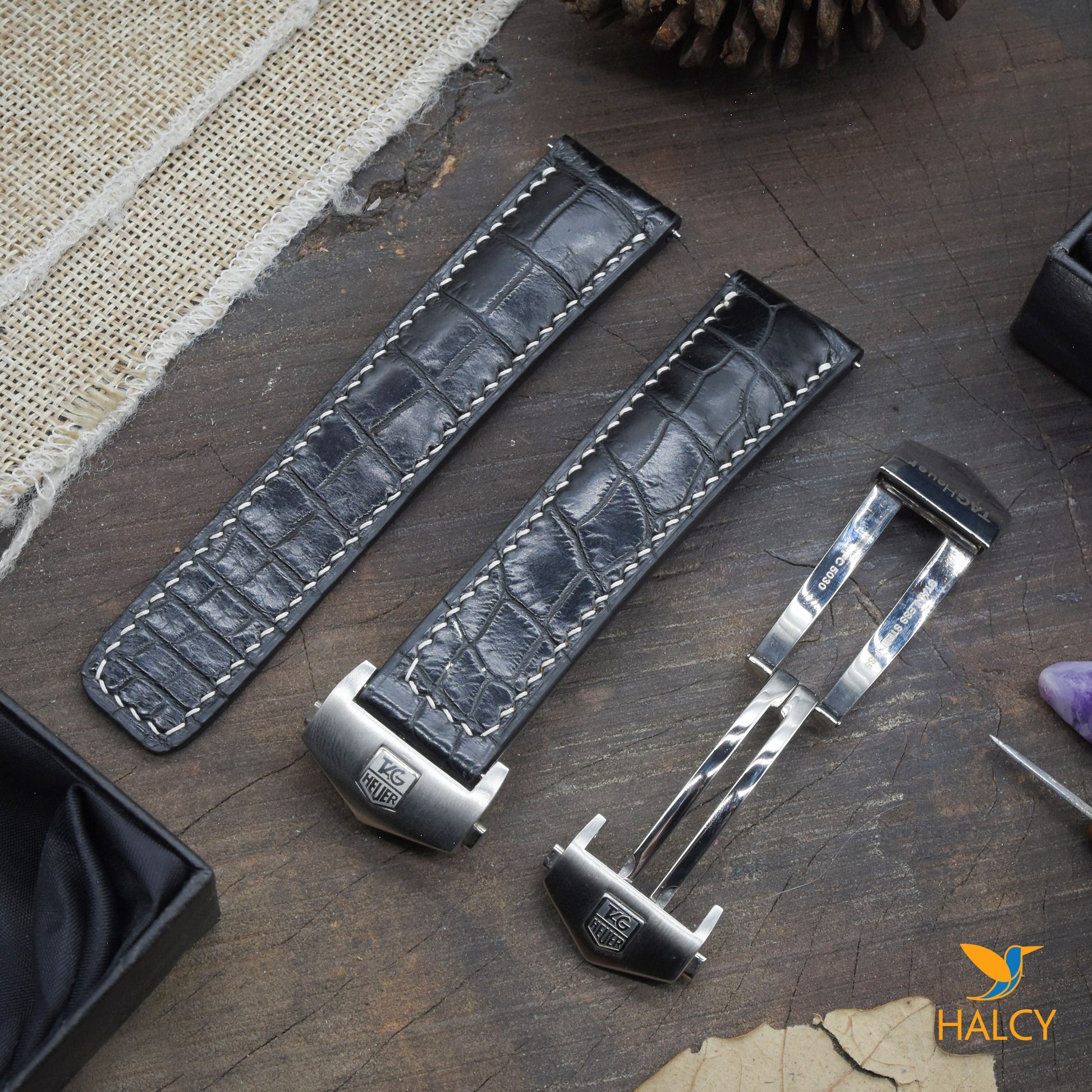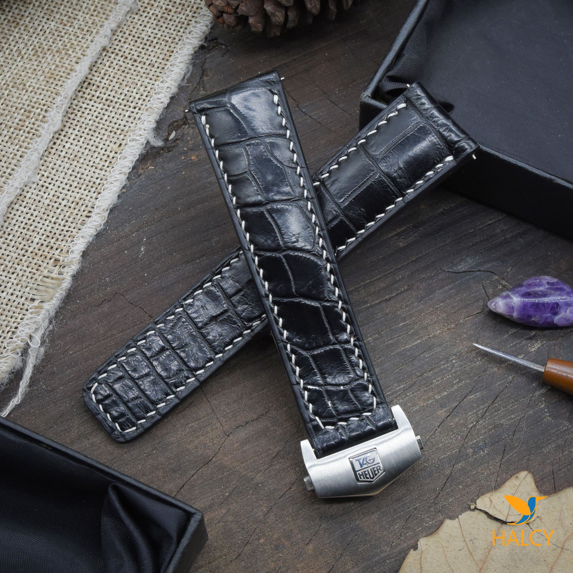 Dây đồng hồ làm thủ công từ da cá sấu đủ size cho đồng hồ Tag Heuer