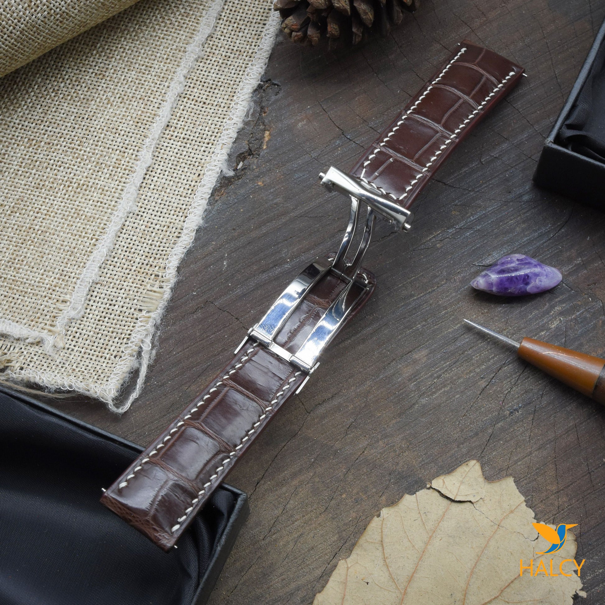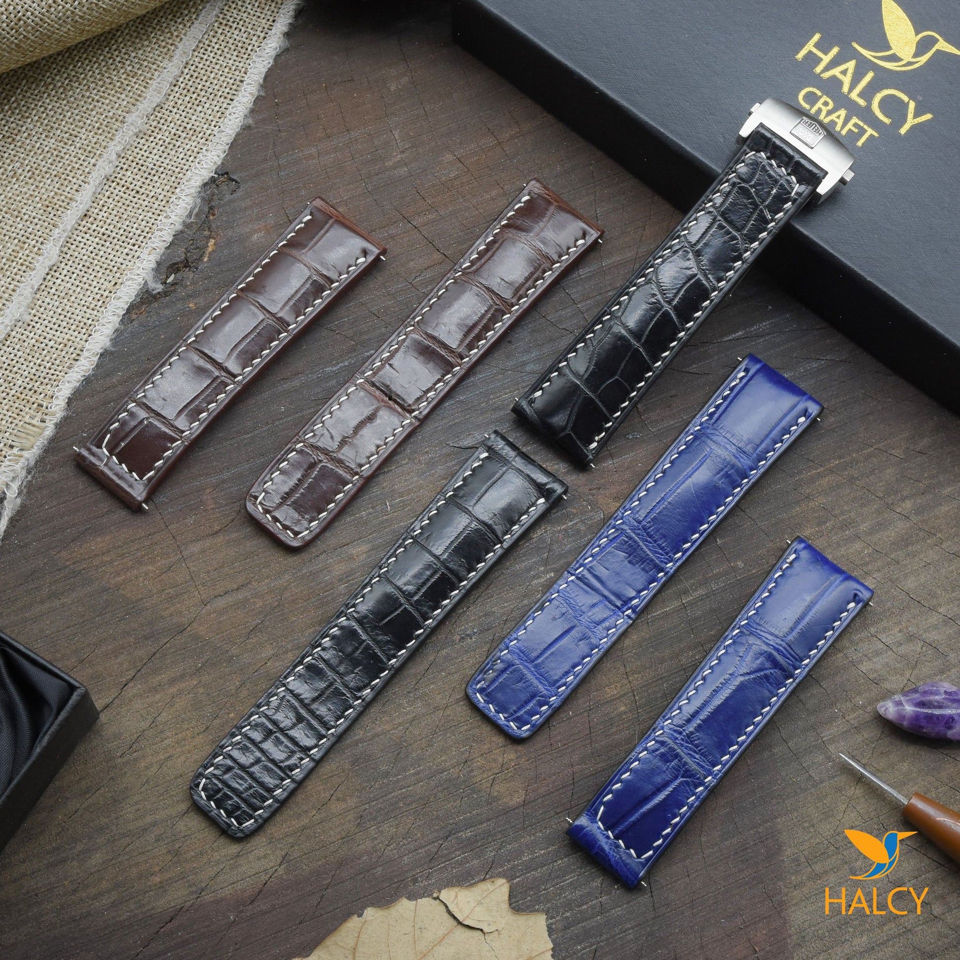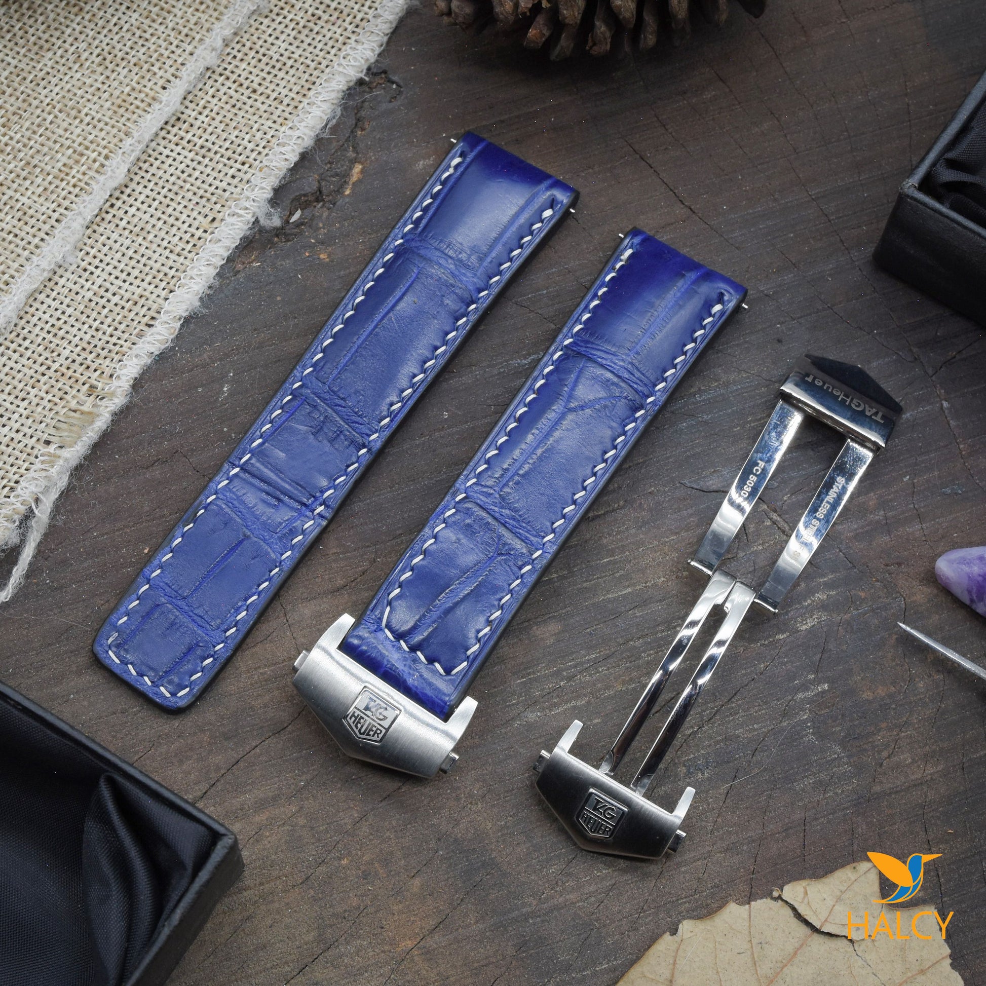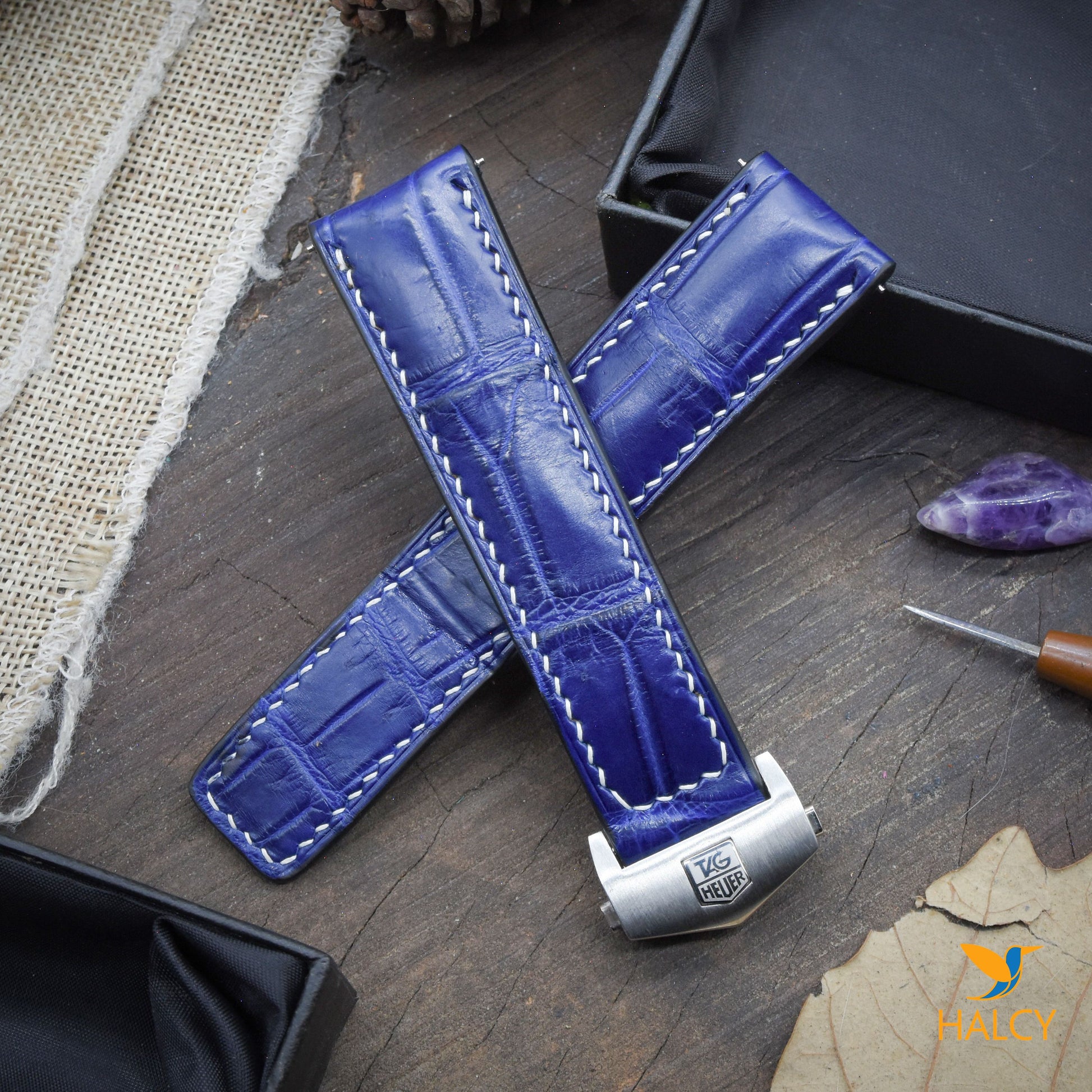 Dây đồng hồ làm thủ công từ da cá sấu đủ size cho đồng hồ Tag Heuer