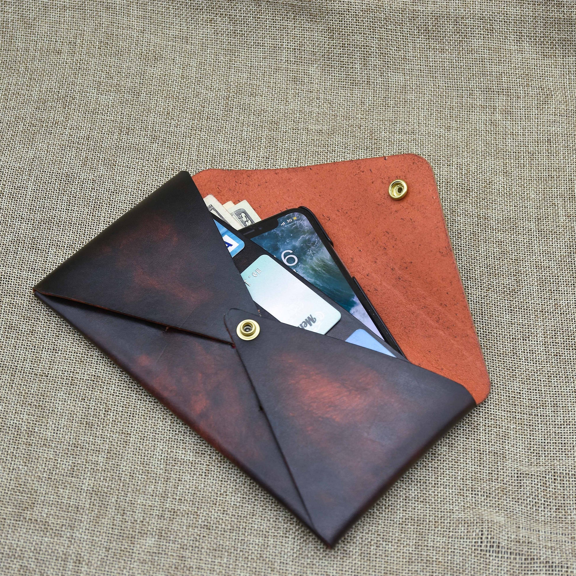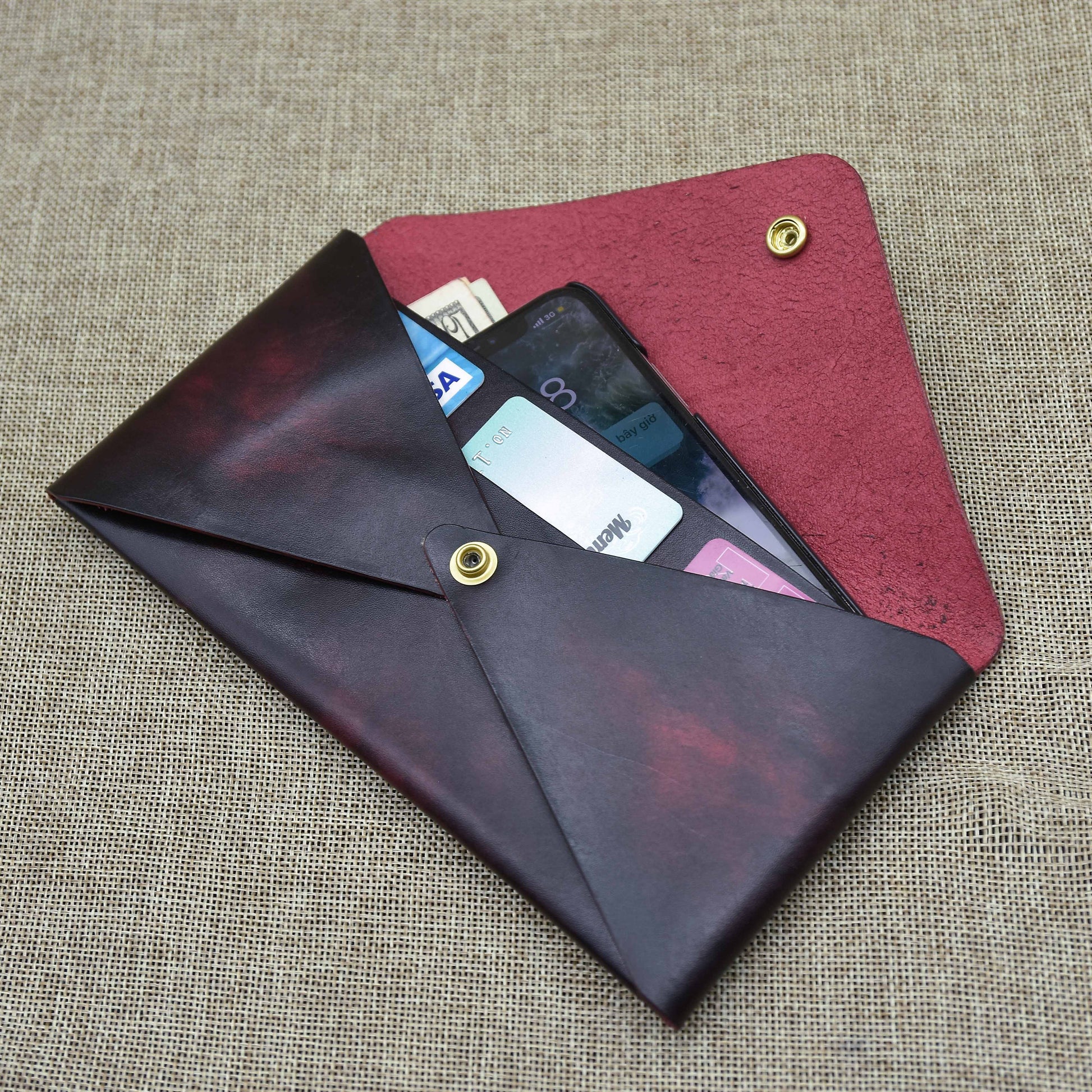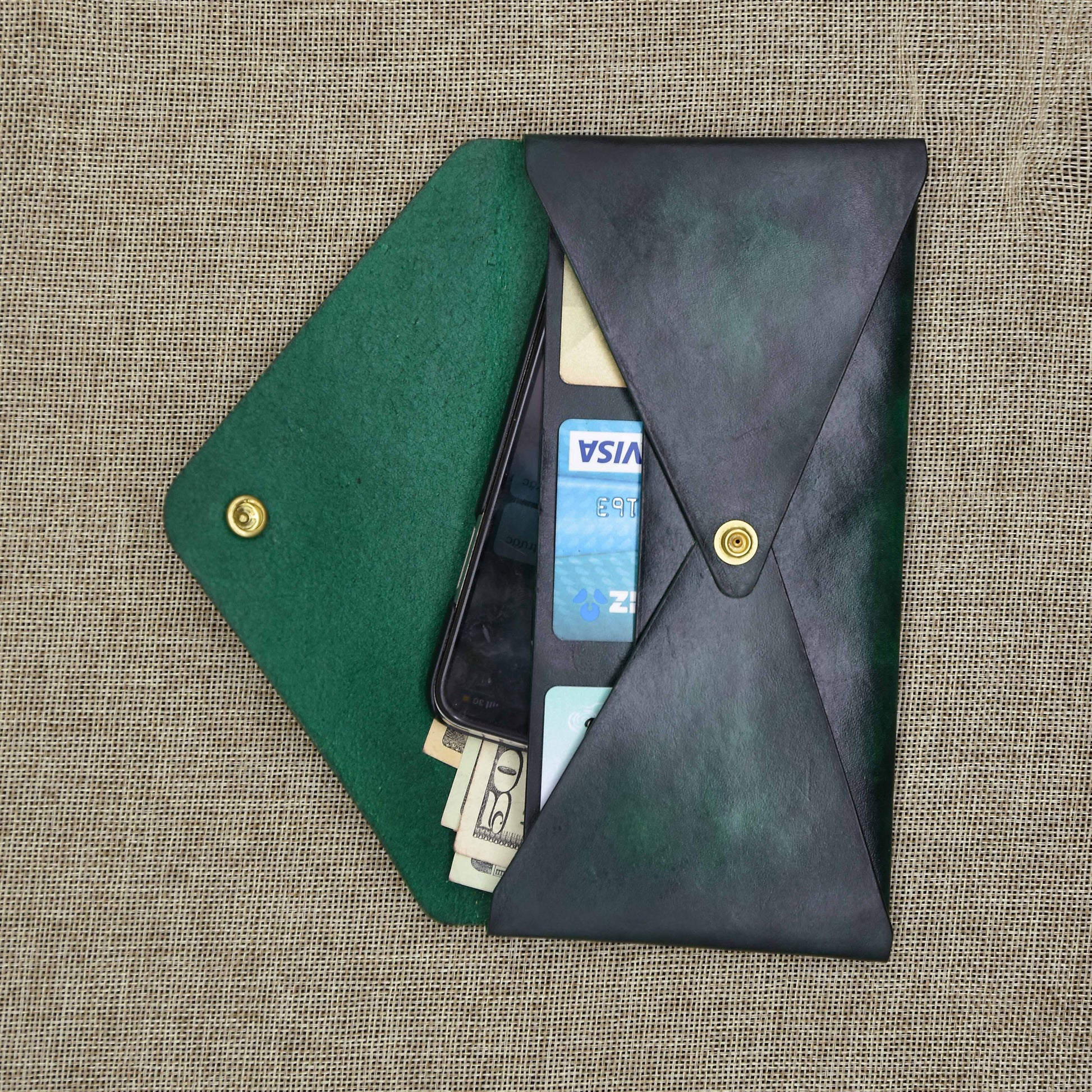 Ví nam, nữ làm thủ công - cắt tay, khâu tay, nhuộm tay, hoàn thiện bằng tay - từ da Veg chất lượng cao.